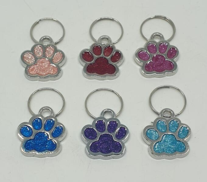Mancs alakú, csillámos kutyabiléta, több színben.